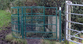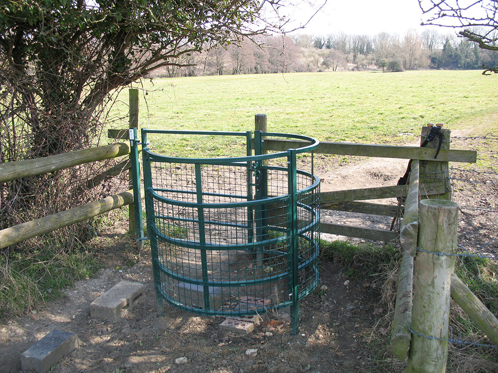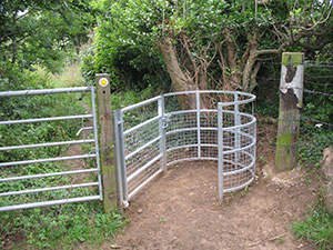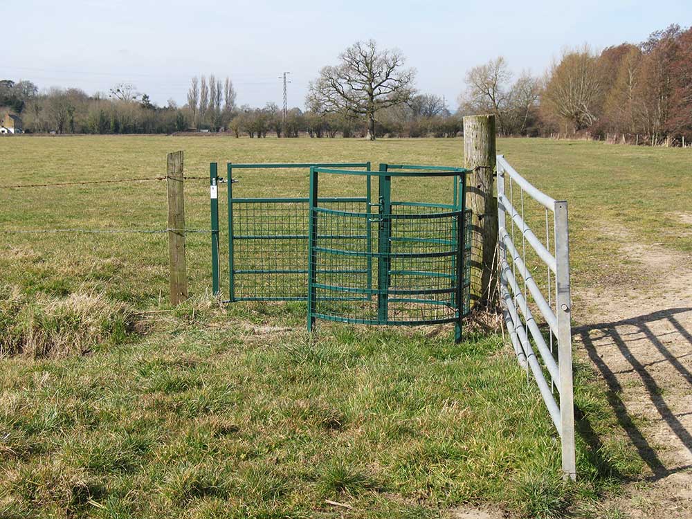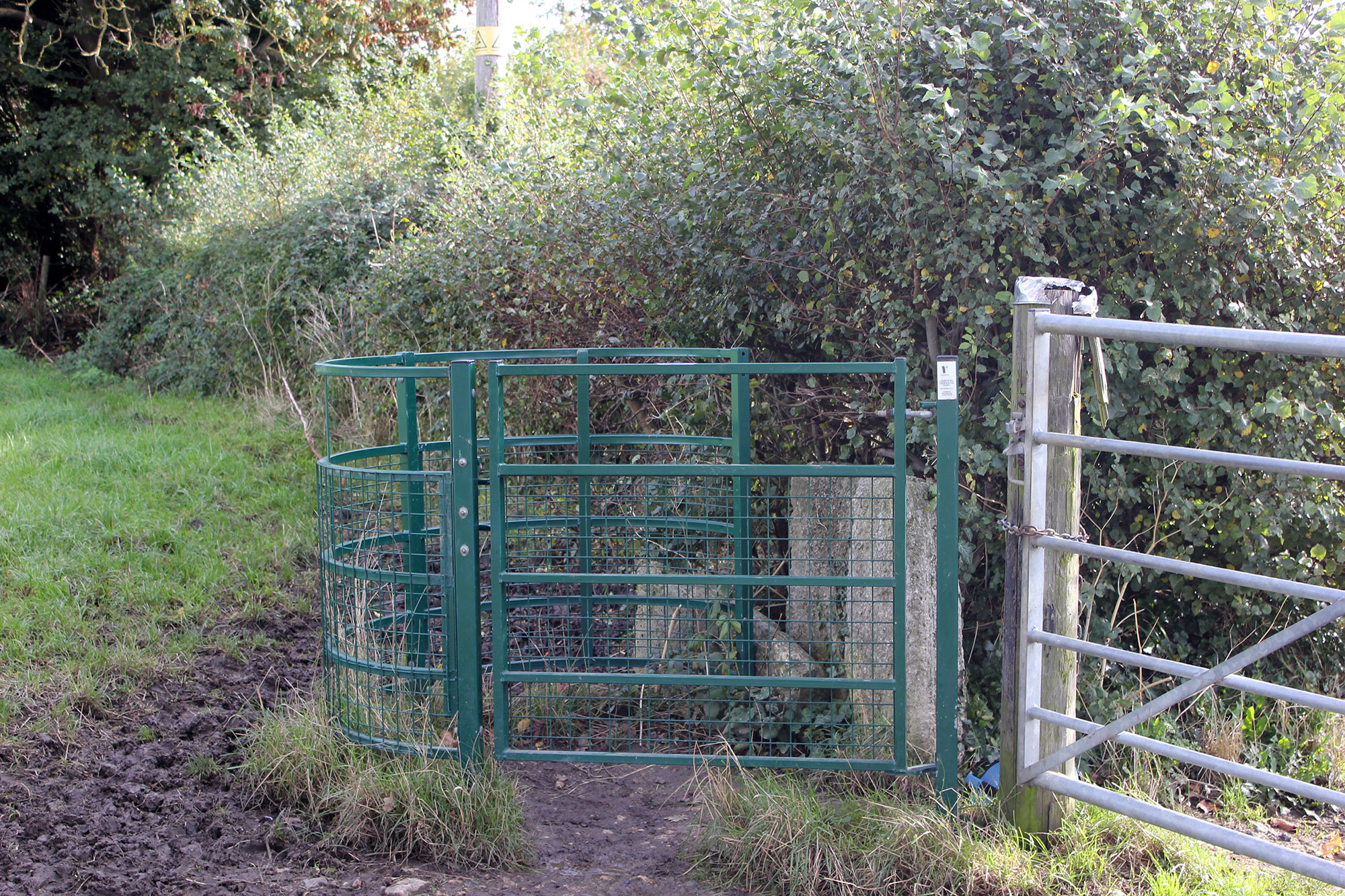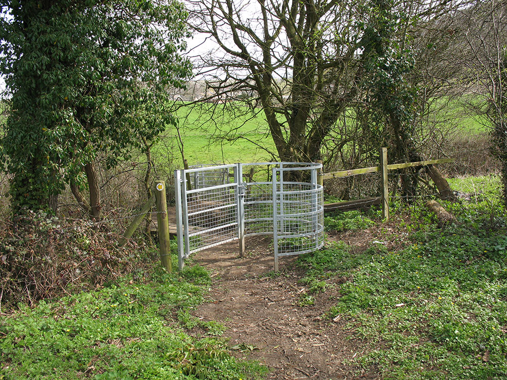Two gates installed in the Parish of Frocester near Frocester Court Farm. Thge footpath spanned a ditch hence two gates had to be installed.