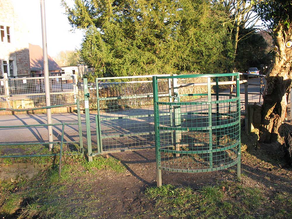 Installed in King's Stanley as one of three kissing gates on the footpath leading to Woodside Lane.